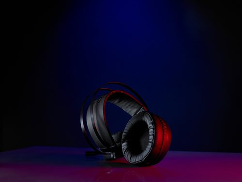 RAPOO雷柏,领军国产外设品牌,实力大厂上市企业为旗下游戏V系列新添虚拟7.1声道RGB的游戏耳机——雷柏VH310,高品质50MM的发声单元,360°高灵敏全指向降噪麦克风,飞翼式的RGB炫彩流光,与身俱来的环绕音效,助你扫除盲区,耳听八方。 简洁的设计,立体的机身,VH310耳机以黑色的整体造型,智能悬浮式头戴完成整身造型,耳机外壳下自带飞翼式的RGB灯光,亮澈你的电竞色彩,让你在黑夜中闪耀主宰那属于你的游戏世界。 VH310自适应头部大小,降低压夹感,持久作战,舒适解锁更多潜藏技能。头带、线材抗暴力拉扯,坚固耐用,支撑性俱佳,另外,高密度惰性海绵搭配全包式大耳罩,隔绝噪音。